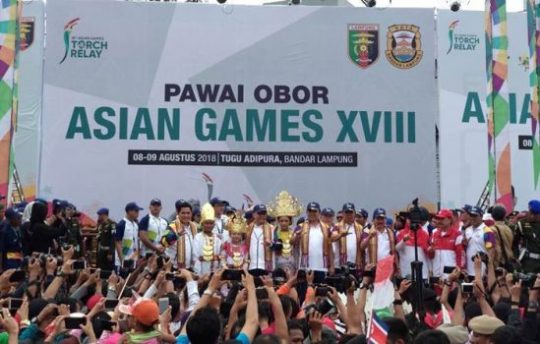Penyalaan api obor Asian Games dilakukan oleh ketua MPR RI Zulkifli Hasan didampingi Menteri Keuangan Sri Mulyani Indrawati, Gubernur Lampung Ridho Ficardo, Wagub Bachtiar Basri, Walikota Bandarlampung Herman HN, Kapolda Irjen Suntana, Danrem 043 Gatam Kolonel Kav Erwin Djatniko, dan Ketua Indonesia Asian Games Organizing Committee (INASGOC), Erick Thohir.