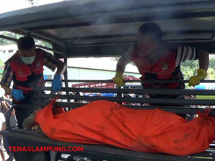 Zainal Asikin/Teraslampung.com Jasad Ade Bambang Irawan dievakuasi petugas kepolisian dari Kali Akar BANDARLAMPUNG–Sosok Mayat laki-laki diketahui bernama Ade Bambang Irawan (40) warga Jalan Raden Kesuma Yuda, Kelurahan Sukarame dua,Ke...