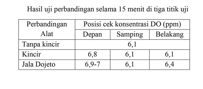 Sebelumnya kedua alat tersebut telah diuji coba untuk dioperasikan di beberapa tambak udang di wilayah Indonesia. Konsentrasi DO yang dihasilkan oleh Dojeto dan kincir hampir sama. Dojeto tidak hanya untuk budidaya udang tetapi juga budidaya ikan. Dojeto dan Dojeto Max juga sangat cocok untuk digunakan di kolam bundar yang saat ini sedang menjadi tren baru dalam dunia akuakultur dan budidaya skala rumah tangga.