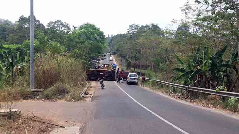 Tidak ada korban dalam peristiwa tersebut. Namun, karena posisi truk ketika terguling menutup separo badan jalan, arus lalu lintas di ruas jalan tersebut menjadi terganggu.