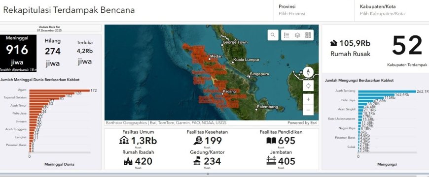 TERASLAMPUNG.COM, BANDA ACEH -- Badan Nasional Penanggulangan Bencana (BNPB melaporkan, jumlah korban meninggal dunia dalam bencana banjir bandang dan longsor di Aceh, Sumatera Utara, dan Sumatera Barat hingga Sabtu petang (6/12/2025) mencapai 914 jiwa. Artinya, ada penambahan 47 jiwa korban meninggal dibanding kemarin.