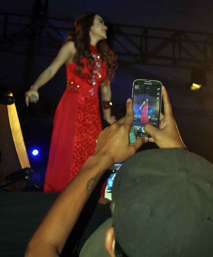 Ketika pembawa acara memanggil nama Cita Citata untuk tampil–dan pagar besi pembatas sudah dibuka–, mereka pun berhamburan ke depan panggung. Tanpa perlu repot-repot mengepaskan ukuran diafragma dan mengintip di balik lensa, mereka langsung jeprat-jepret dengan ponsel. canggihnya. Sementara beberapa pemegang kamera DSLR tampak ‘mengintip’ Cita Citata dengan satu mata dipicingkan agar objek bidikannya pas.