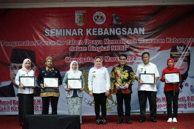 “Semoga yg disampaikan dalam seminar Kebangsaan ini dapat berguna dan bermanfaat bagi seluruh rakyat Tulang bawang, ujar Bupati Tulang Bawang, Winarti