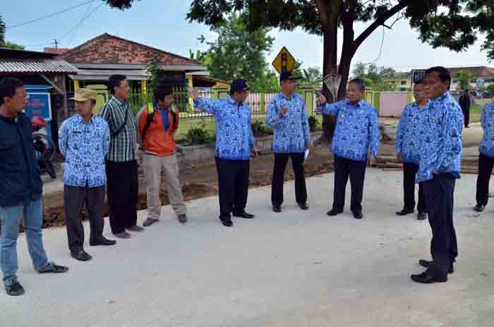 TERASLAMPUNG.COM — Walikota Metro Ahmad Pairin dan Wakil Waliota Metro Djohan meninjau secara langsung kegiatan proyek fisik peningkatan kualitas jalan dan pembuatan jembatan, Selasa (19/9/2016).