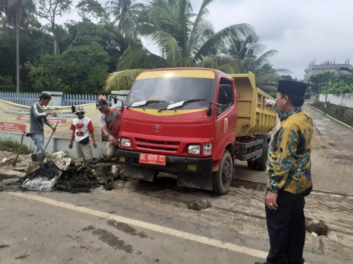 Ketika Herman HN tiba di lokasi, terlihat sejumlah petugas sedang membersihkan drainase yang dipenuhi lumpur. Para pekerja juga membersihkan lumpur dan sampah yang berada di dalam gorong-gorong di bawah jembatan.