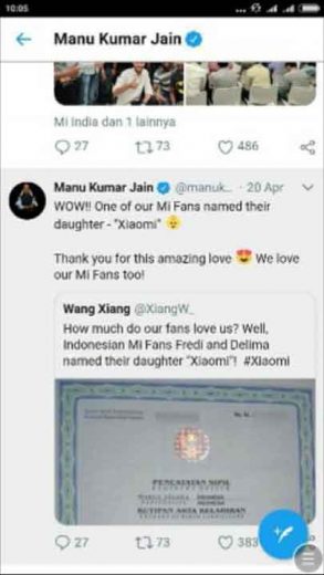 “Andi,Public Relation dari Xiaomi Indonesia, mengucapkan terimakasih atas pemberian nama tersebut. Hal itu ia ucapkan saat ia menelpon saya belum lama ini,” terang dia.