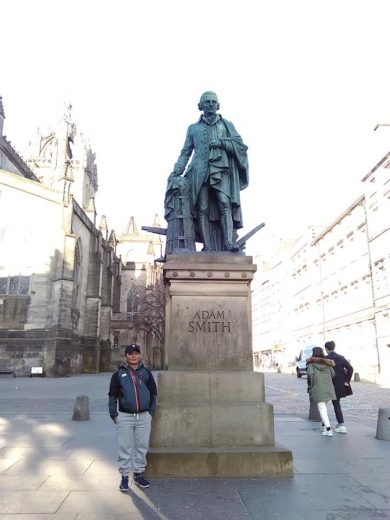 Sebagai penyuka sejarah tidak lengkap rasanya bila berkunjung ke Edinburg tanpa mengunjungi makam dan patung Adam Smith. Adam Smith lahir di Kirckaldy Skotlandia 5 Juni 1723 dan meninggal di Edinburg 17 Juli 1970 dikenal dengan magnum opus-nya yang berjudul The Wealth of Nation yang pikirannya bertolak belakang dengan Karl Marx.