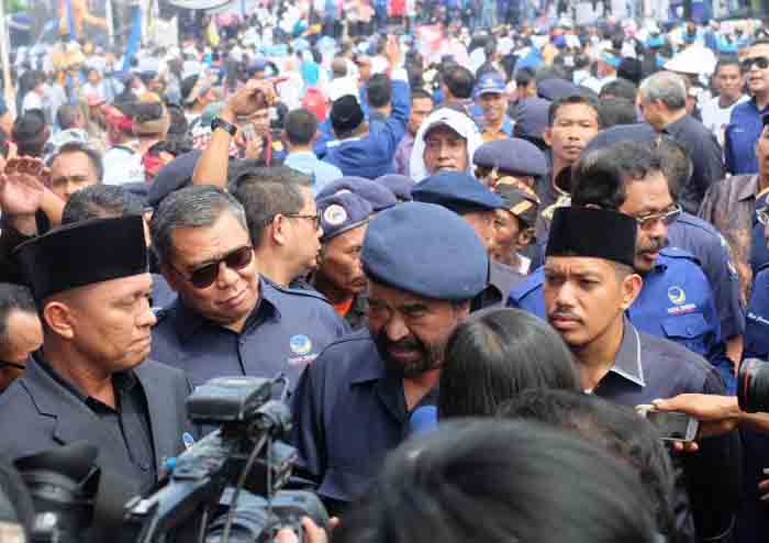 TERASLAMPUNG.COM — Ribuan kader dan simpatisan Partai Nasional Demokrat (Nasdem) dari berbagai kabupaten dan kota di Lampung menghadiri deklarasi pencalonan Bupati Lampung Timur Mustafa sebagai Calon Guibernur Lampung, di halaman Islamic Center, Sukadana, Kabupaten Lampung Timur, Minggu (30/4/2017).
